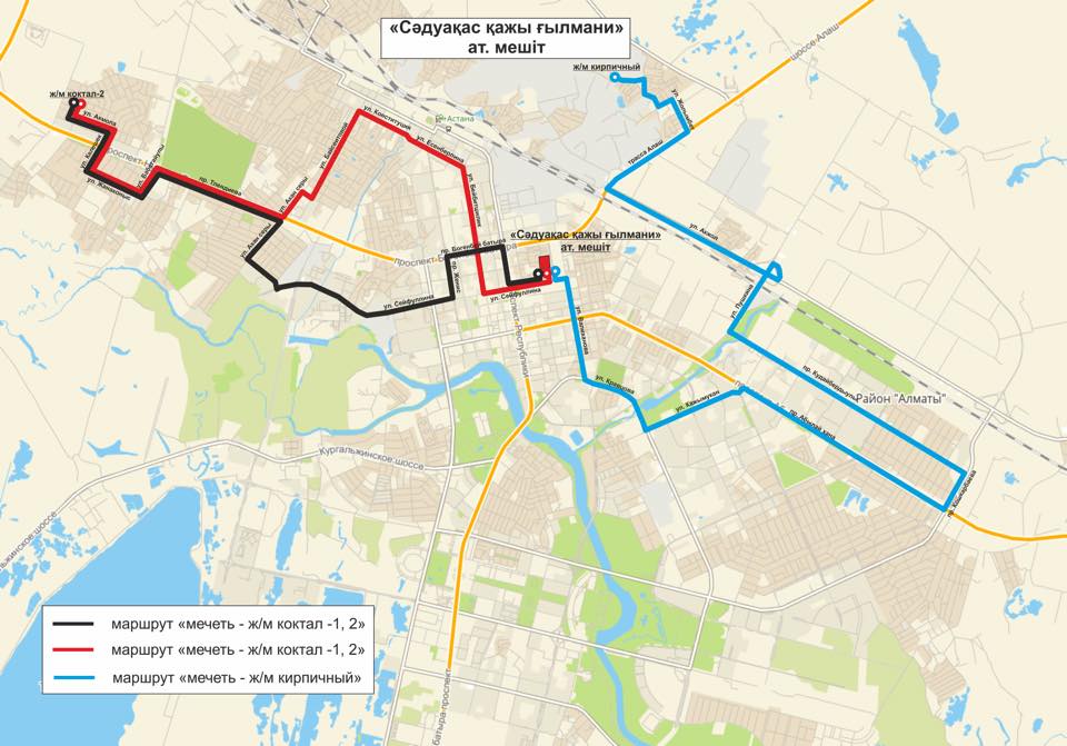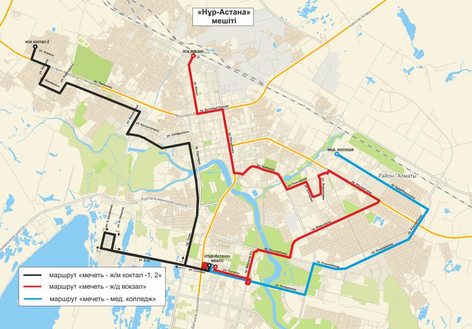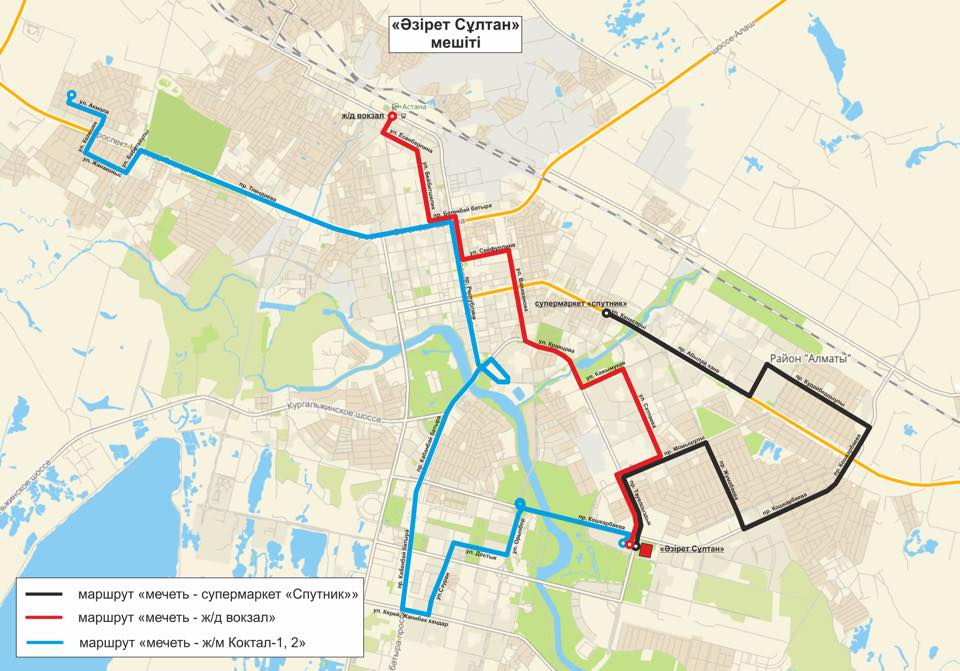 اۆتوبۋس «ازىرەت سۇلتان» مەشىتىنە دەيىن مىنا باعىتپەن جۇرەدى: