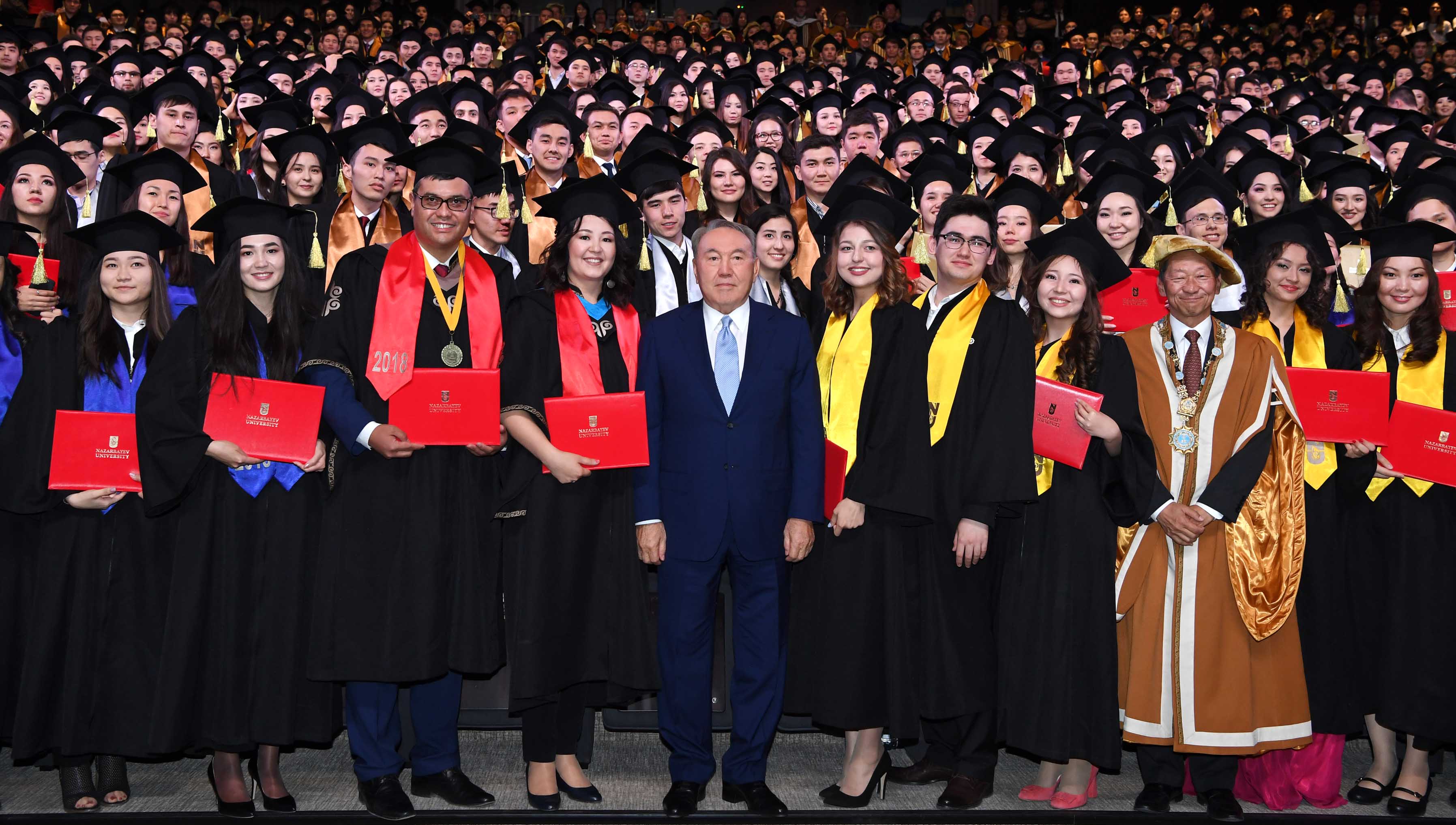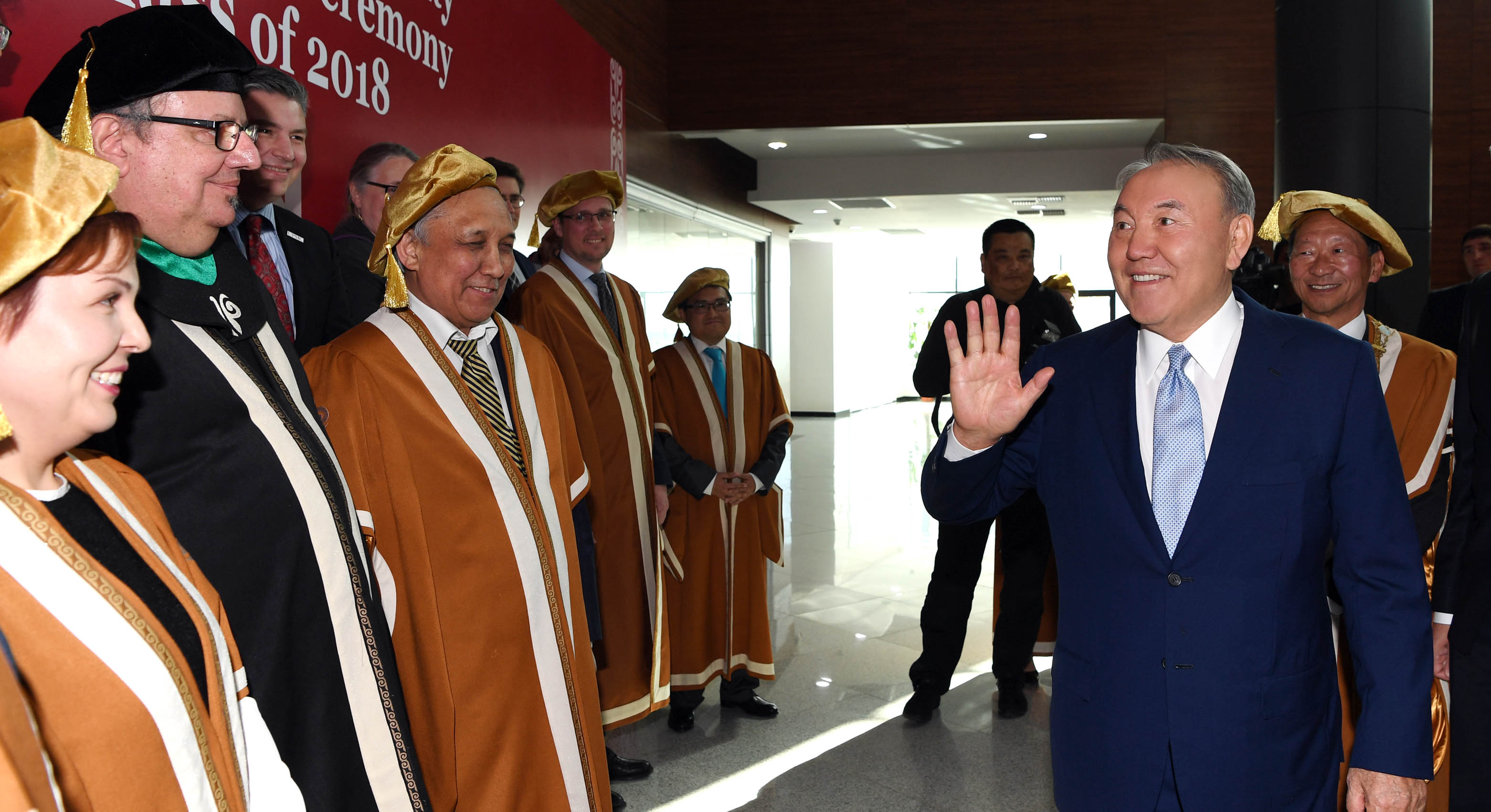 مەملەكەت باسشىسى ۋنيۆەرسيتەتتىڭ ودان ءارى تابىستى دامۋى ەلىمىزدىڭ ادامي كاپيتالىنىڭ ارتۋىنا سەپتىگىن تيگىزىپ, قازاقستاندا بۇكىل ورتالىق ازيا ءوڭىرى اۋقىمىنداعى تولىققاندى ءبىلىم بەرۋ حابىن قالىپتاستىرۋعا مۇمكىندىك بەرەتىنىن ايتتى. نۇرسۇلتان نازارباەۆ قويىلعان مىندەتتەردى ىسكە اسىرۋ ءۇشىن وسى جوعارى وقۋ ورنىنا الدىڭعى قاتارلى زياتكەرلىك جانە عىلىمي رەسۋرستاردى جۇمىلدىرۋ, ءوندىرىس پەن كاسىپكەرلىكتىڭ يننوۆاتسيالىق مادەنيەتىنە باعىتتالعان وقۋ باعدارلامالارىنا بەت بۇرۋ, سونداي-اق قاشىقتىقتان ءبىلىم بەرۋ پلاتفورماسىن دامىتۋ ارقىلى ۋنيۆەرسيتەت جۇمىسىن جانداندىرۋدى تاپسىردى.