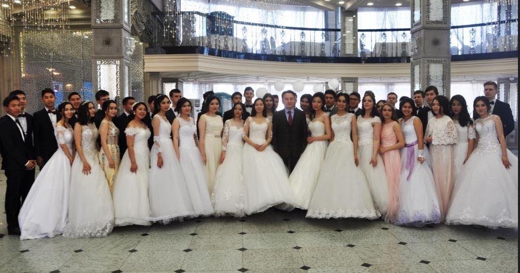 سالتاناتتى كەشتە اق كويلەك پەن سموكينگ كيگەن جاستار ۆالس بيلەدى.