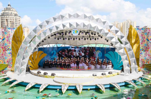 شارا سوڭىندا اشىق اسپان استىنداعى امفيتەاتر ساحناسىندا اتىراۋ وبلىسى فيلارمونياسىنىڭ ونەر ۇجىمى ۇيىمداستىرعان « ۇلى دالا جۇرەگى – استاناما» اتتى تەاترلاندىرىلعان كونتسەرتتىك باعدارلاما كورسەتىلدى.