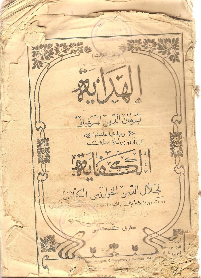 تابىلعان كىتاپتاردىڭ ءبىرى «حيدويا \فيكح – سەنىمدى نۇسقا-تولىق شاريعات كىتابى/, اۆتورى بۋرحاناددين مارعيناني, مۇنىڭ تۇسىندىرمەلەرى ءال-كيفايا, جەتكىلىكتى جالاليددين حورەزمي, ءال-كارلاني», 1904 جىلى جارىق كورگەن.