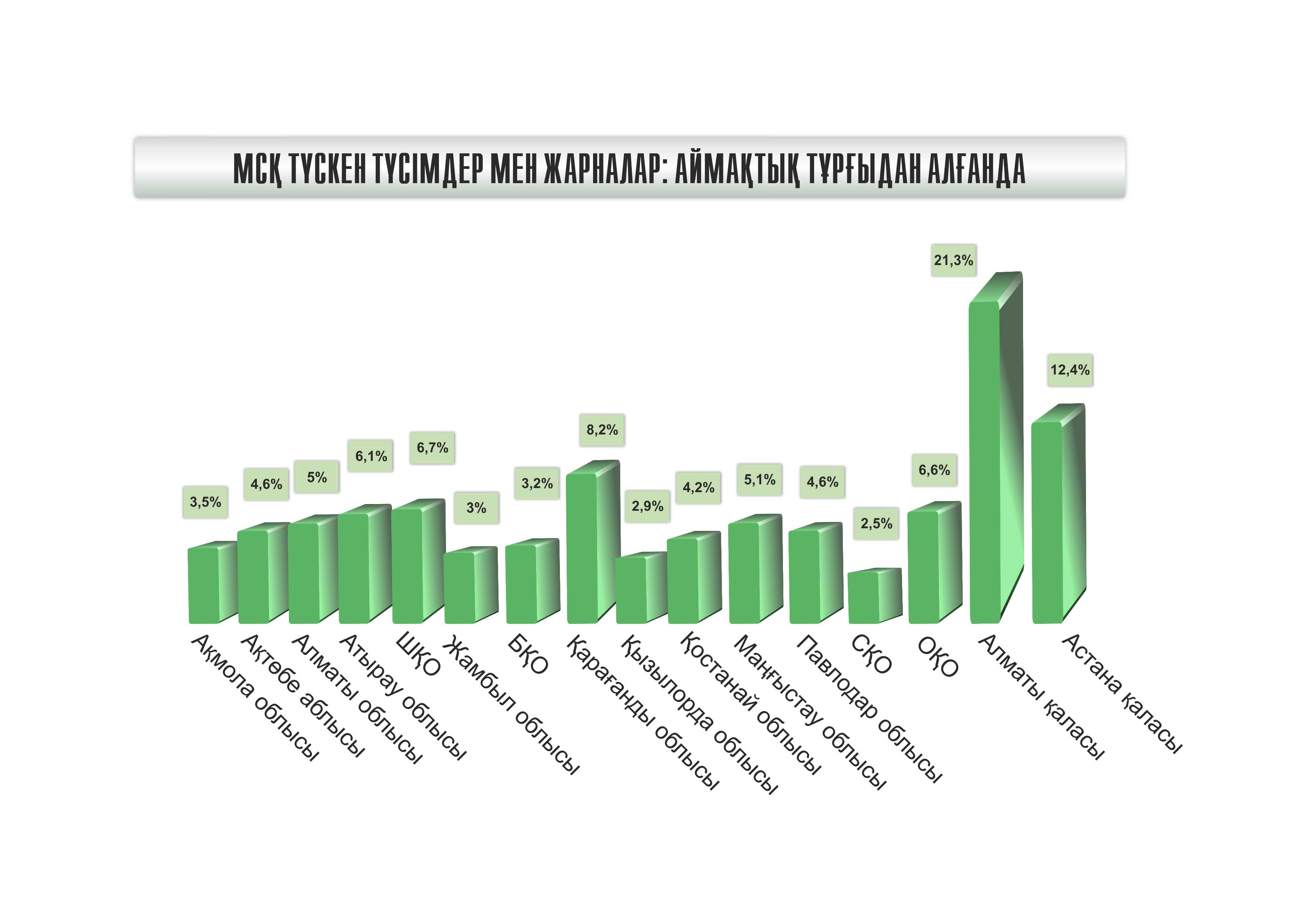ايماقتىق تۇرعىدان العاندا, جارنا تولەۋ جاعىنان الماتى جانە استانا قالالارى مەن قاراعاندى وبلىسى كوش باستاپ تۇر.