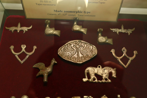 – ارحەولوگيالىق قازبا زەرتتەۋلەرىنىڭ ارقاسىندا تاراز قالاسىنان ءۇش مىڭنان اسا تاريحي ءمانى جوعارى قۇندى جادىگەرلەر تابىلدى. سولاردىڭ 266 ءتۇرىن الىپ كەلدىك. قوستانايلىقتار تۇرگەشتەر زامانىندا سوعىلعان كۇمىس, قولا تەڭگەلەردى, ساۋدا-ساتتىق بارىسىندا كەلگەن قىتايلىق تەڭگەلەر مەن بۇيىمداردى, قارلۇق قاعاناتىنىڭ اشەكەي بۇيىمدارى مەن تۇرمىستىق زاتتارىن, قاراحاندار ءداۋىرىنىڭ مادەنيەتىنەن سىر شەرتەتىن كۇمىس پەن قولادان جاسالعان باقىر تەڭگەلەردى, بۇتىندەي كومبە كۇيىندە تابىلعان ايەل ادامنىڭ التىن, كۇمىس اشەكەيلەرىن, ءۇيسىن داۋىرىنە جاتاتىن قولا اينا مەن شاش تۇيرەۋىشتەردى, تاعى باسقا قۇندى جادىگەرلەردى ءتورت كۇن تاماشالادى, – دەيدى قورىق-مۋزەي قورىنىڭ باس ساقتاۋشىسى اننا كروكوشەۆا. قوستانايلىقتاردى كونە قالا كورمەسىندە التىن اشەكەيلەرمەن بىرگە ەجەلگى قالالاردان جەتكەن سۋ قۇبىرى قىزىقتىردى. قىشتان ءمىنسىز ەتىپ قۇيىلعان قۇبىرلار قازاق دالاسىنداعى جوعارى وركەنيەتتىڭ بولعاندىعىنا كورەرمەننىڭ كوزىن جەتكىزەدى.