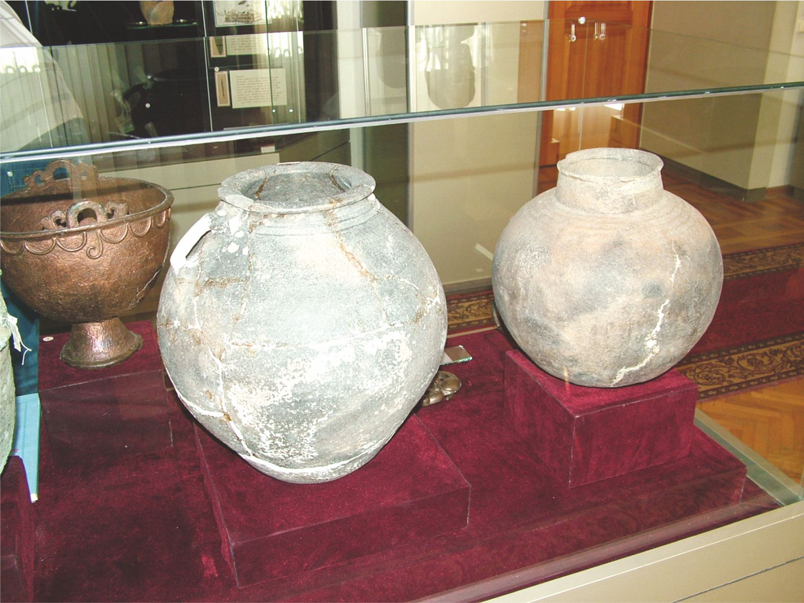 ەر ادامنىڭ قابىرىنەن قىرلى تۇتقالارى بار, موينى جىڭىشكە ۇلكەن قۇمىرا, تەمىر وجاۋ, تەمىر وراق, نايزا, اعاش قىندى, اسىل تاسپەن كومكەرىلگەن ەكى ءجۇزدى سەمسەر تابىلعان. بۇل ادامنىڭ كيىمىنە دە جارتى شار ءتارىزدى التىن قاپتامالار تىگىلگەن. قابىردىڭ شىعىس جاعىندا كۇمىس اۋىزدىعى بار ات ابزەلى, تاعالار مەن جۇگەن قاپتارمالارى قويىلىپتى. ىدىستاردان – مىس قازان, ءتۇبى دوڭگەلەك مىس ساپتىاياق, موينى جىڭىشكە, تۇتقاسى يىلگەن مىس قۇمىرا شىققان.