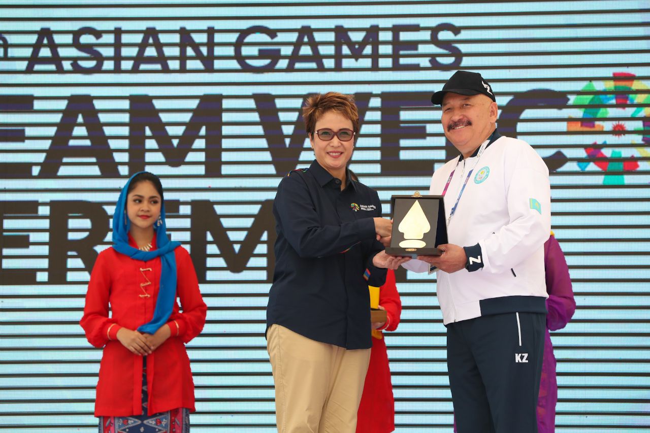 قازاقستان ۇلتتىق وليمپيادالىق كوميتەتى سپورت ديرەكتسياسىنىڭ باسشىسى, ازيا ويىندارىنداعى قازاقستاننىڭ سپورتتىق دەلەگاتسياسىنىڭ جەتەكشىسى ەلسيار قاناعاتوۆ تۋ كوتەرۋ سالتاناتىنا جينالعان سپورتشىلارعا ساتتىلىك تىلەپ, ازيا ويىندارىنىڭ قازاقستان ءۇشىن ماڭىزدى سپورت دوداسى ەكەنىن اتاپ ءوتتى.