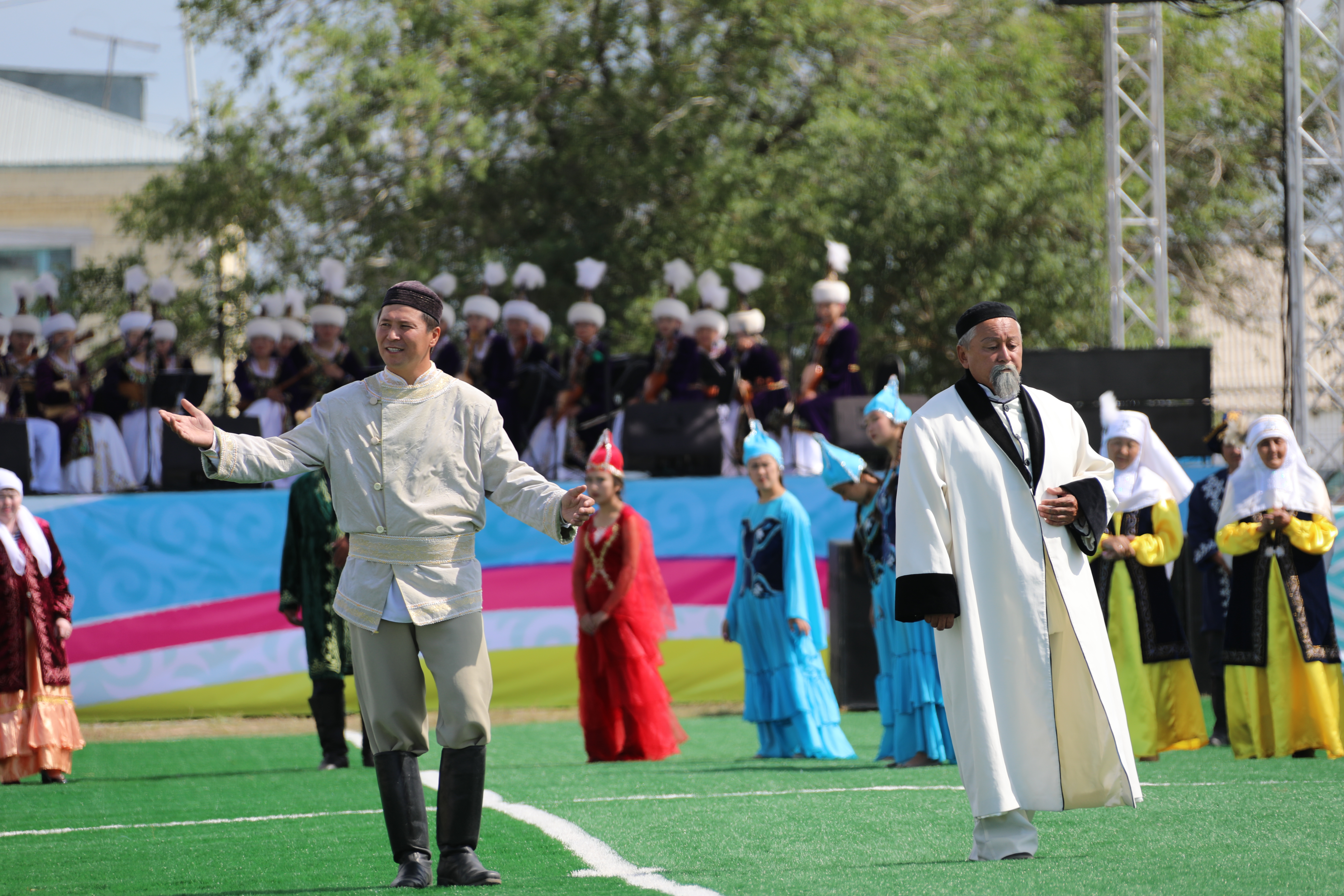 وبلىس اكىمىنەن كەيىن ءسوز العان استانادان ارنايى كەلگەن ل.گۋميلەۆ اتىنداعى ەۋرازيا ۇلتتىق ۋنيۆەرسيتەتىنىڭ رەكتورى ەرلان سىدىقوۆ مەملەكەتتىك حاتشى گۇلشارا ابدىحالىقوۆانىڭ قۇتتىقتاۋىن وقىپ بەردى. مەرەيتويلىق شارالار ءتۇس اۋا قاراۋىل توبەدە ۇلتتىق ويىندارمەن جالعاسادى.