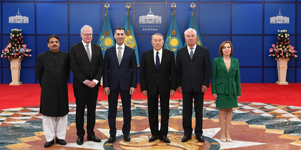 ءراسىم بارىسىندا نۇرسۇلتان نازارباەۆقا ليۆاننىڭ توتەنشە جانە وكىلەتتى ەلشىسى جيسكار ءال-حۋري, ۋكراينانىڭ توتەنشە جانە وكىلەتتى ەلشىسى يۆان كۋلەبا, برازيليانىڭ توتەنشە جانە وكىلەتتى ەلشىسى مارسيا دوننەر ابرەۋ, گەرمانيانىڭ توتەنشە جانە وكىلەتتى ەلشىسى تيلو كليننەر, پاكىستاننىڭ توتەنشە جانە وكىلەتتى ەلشىسى يمتياز احماد كازي سەنىم گراموتاسىن تاپسىردى.