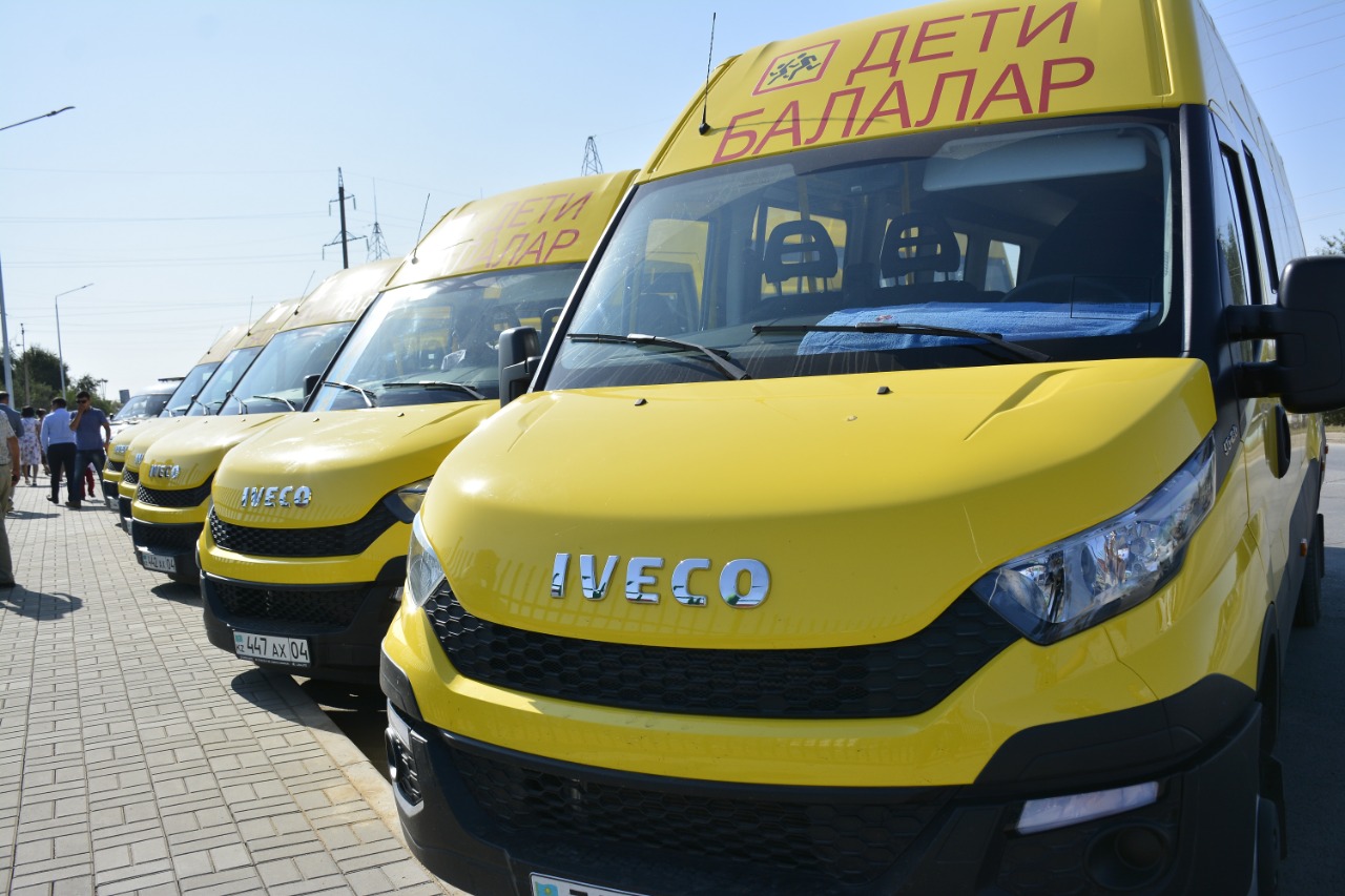 سونىمەن بىرگە, وقۋشىلاردى جالپى ءبىلىم بەرۋ مەكەمەلەرىنە قاۋىپسىز تاسىمالداۋ ماسەلەسى جەرگىلىكتى بيلىك ورگاندارىنىڭ باسىمدىقتارىنىڭ ءبىرى بولىپ تابىلادى. وسىعان بايلانىستى «باقىتتى بالا» ايماقتىق جوباسىنىڭ اياسىندا 10 مەكتەپتىڭ ديرەكتورلارى جاڭا Iveco شاعىن اۆتوبۋستارىنىڭ كىلتتەرىن الدى. وتاندىق ءوندىرىستىڭ ىڭعايلى اۆتوكولىگى وبلىس ورتالىعىنىڭ شالعاي اۋداندارىنان بالالاردى تاسىمالداۋ ءۇشىن ارنالعان.