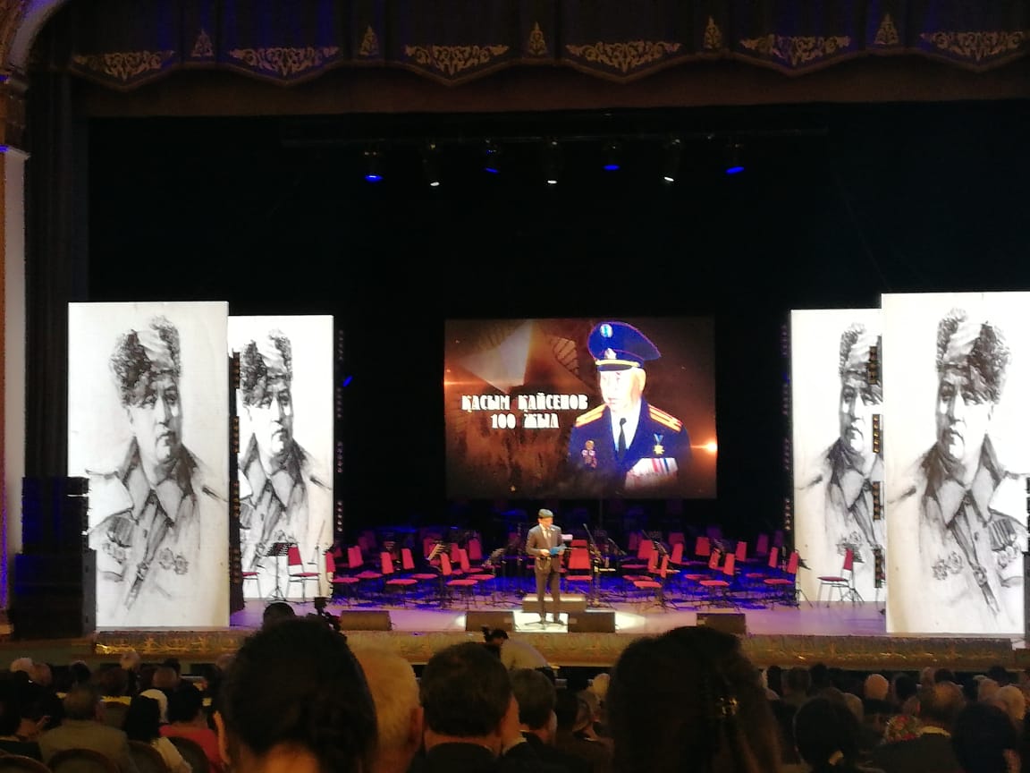 كەش كومپوزيتسياسى قاسىم قايسەنوۆتىڭ تىرشىلىگىندە تۇسىرىلگەن بەينەجازباسىنا قۇرىلدى. پوەتيكالىق-مۋزىكالىق كەش الماتى وبلىستىق بەكەن ريموۆا اتىنداعى دراما تەاترىنىڭ قاسىم قايسەنوۆ تۋرالى «جۇماق ماعان بۇيىرماس...» سپەكتاكلىنىڭ «قاسىمنىڭ مونولوگى» ۇزىندىسىنە ورايلاستىرىلعان نۇرعيسا تىلەنديەۆتىڭ «كوگەرشىندەر» انىمەن اياقتالدى.