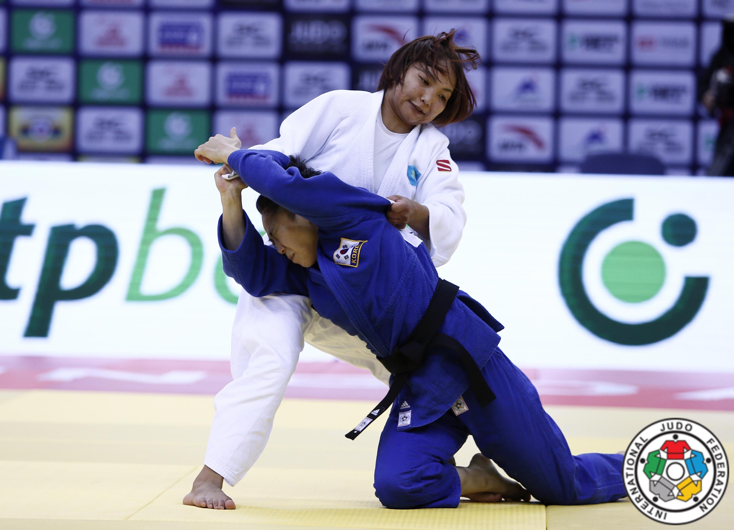 ايەلدەر اراسىنداعى اسا جەڭىل سالماقتا توسىن ناتيجە تىركەلدى. فينالدا بىلتىرعى جىلعى الەم چەمپيونى, 23 جاستاعى جاپونيانىڭ جۇلدىزى فۋنا تاناكي مەن 17 جاستاعى ۋكراينالىق داريا بەلودەد بەلدەستى. بۇل باسەكەدە كوپشىلىك داڭقتى بالۋاننىڭ جەڭىسكە جەتەتىنىنە قىلاۋداي دا كۇمان كەلتىرگەن جوق. دەسەك تە داريا اسقان دارىن يەسى ەكەن. داڭقتى قارسىلاسىنان ەش قايمىقپاعان بويجەتكەن كەزدەسۋدىڭ باسىنان اياعىنا دەيىن وتە ساۋاتتى كۇرەسىپ, اقىرى الەم چەمپيونى اتاندى.