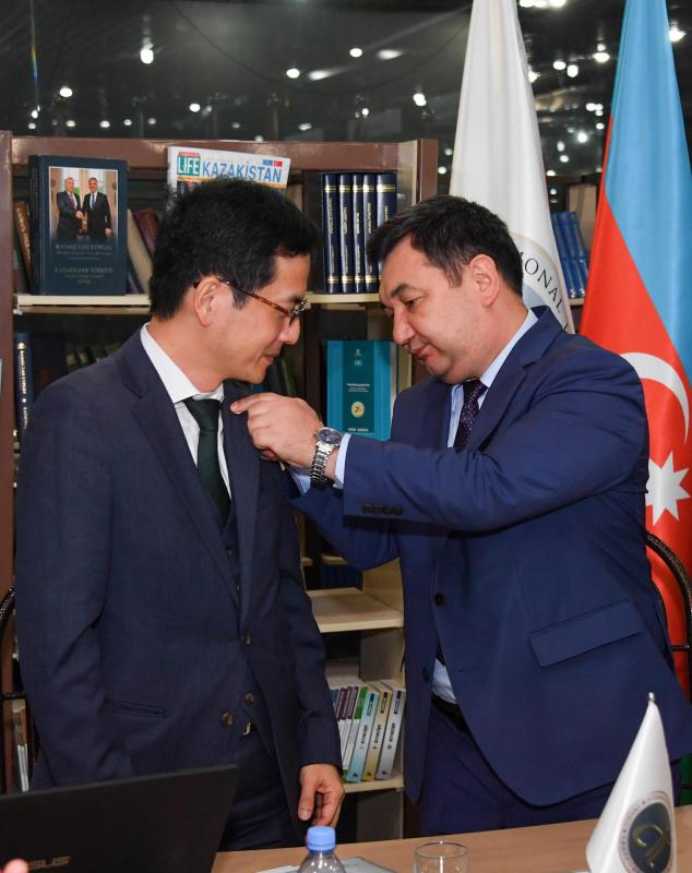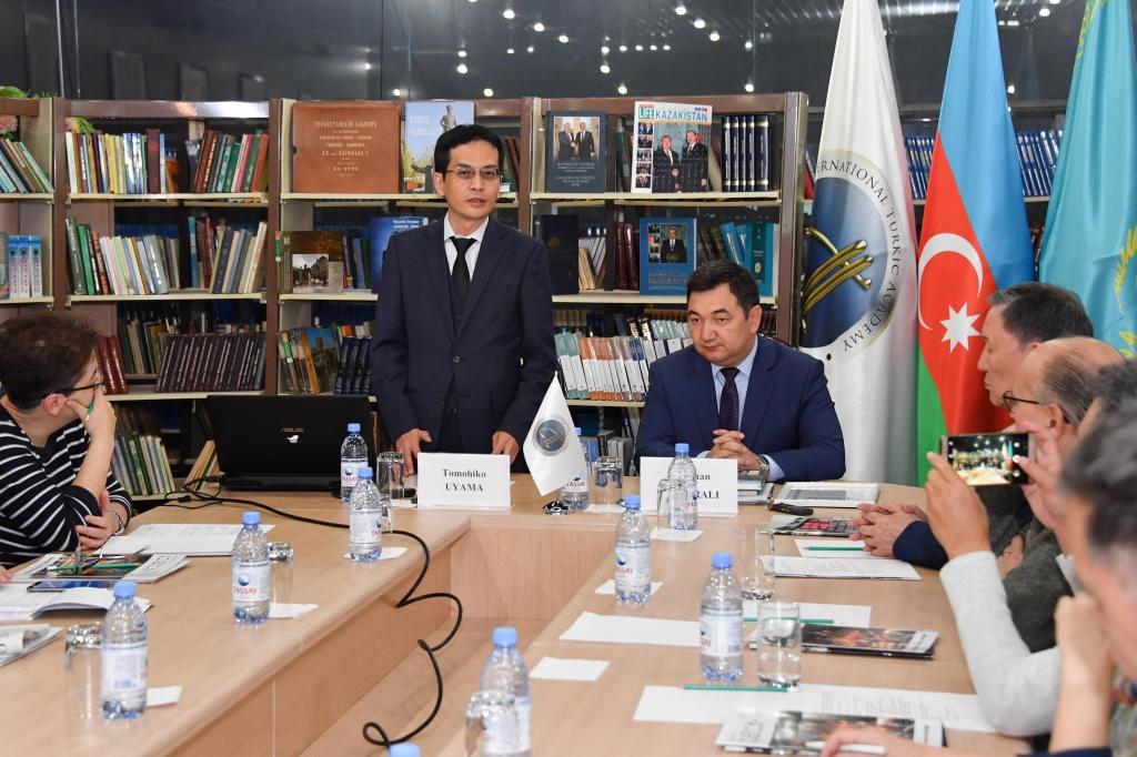 لەكتسيا سوڭىندا حالىقارالىق تۇركى اكادەمياسىنىڭ پرەزيدەنتى دارحان قىدىرالى جاپون عالىمىنا اكادەميانىڭ ارنايى توسبەلگىسىن تاعىپ, ۇيىمنىڭ العىس حاتىن تاپسىردى.