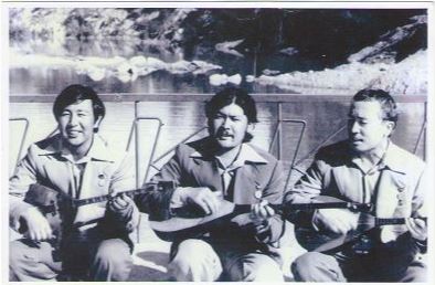 سۋرەتتە: «الاتاۋ» تريوسىنىڭ مۇشەلەرى: سول جاقتان ءبىرىنشى التىنبەك بەكمۇراتوۆ, مۇحتار راحمانقۇلوۆ, التىنبەك قورازباەۆ