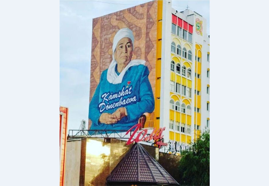 جاڭا تەحنولوگيامەن سالىنعان سۋرەتتە باسىنا اق ورامالىن جەلكەسىنەن بايلاعان كامشات اپا «ەلىمە ريزامىن» دەگەندەي مەيىرىممەن قاراپ وتىر. مۇنان بۇرىن قوستانايداعى اباي داڭعىلىنىڭ بويىنداعى ءزاۋلىم ءۇيدىڭ قابىرعاسىندا ابايدىڭ عانا سۋرەتى سالىنعان بولاتىن.