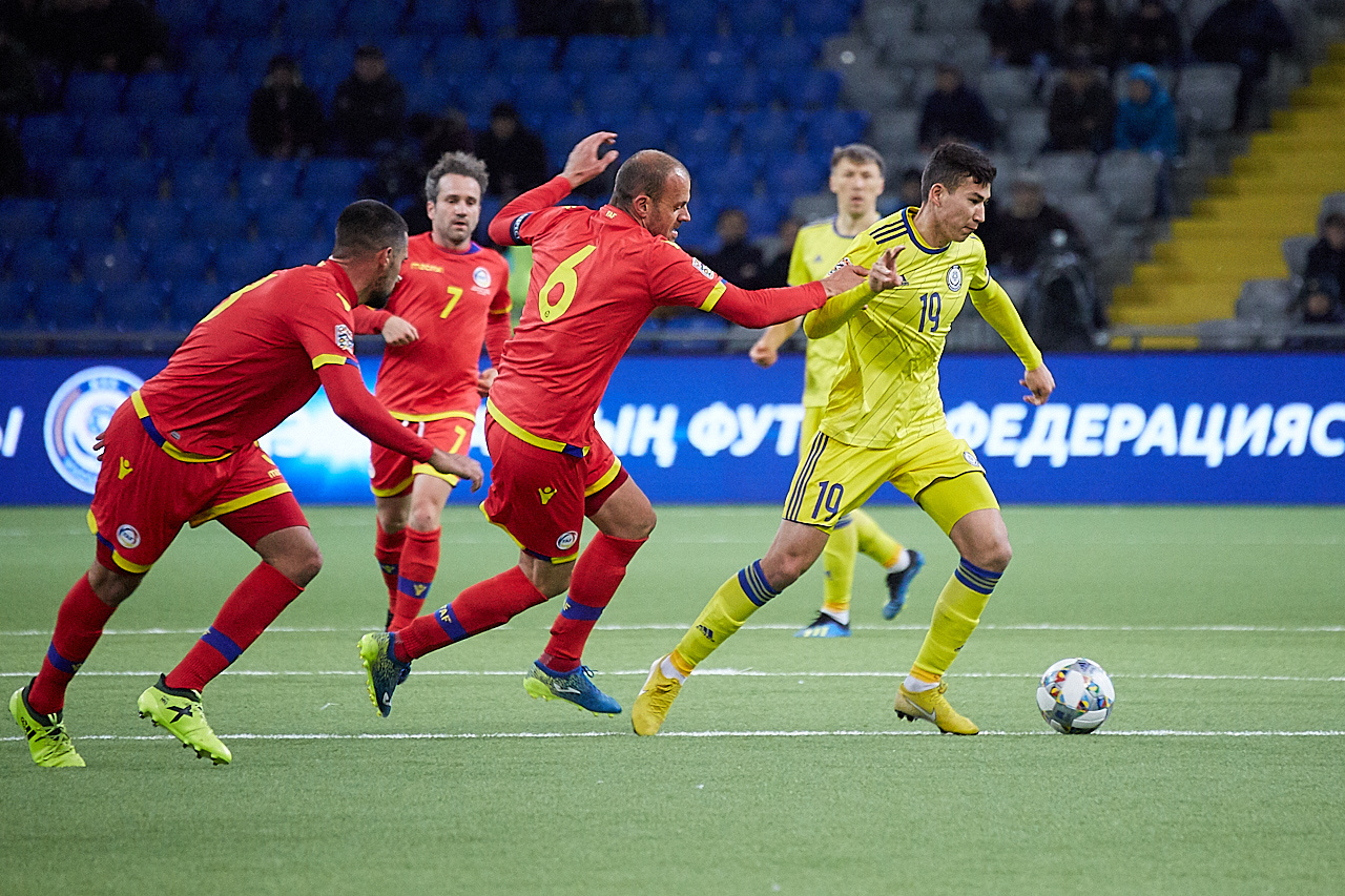 ەكى كوماندا اراسىنداعى كەزدەسۋدىڭ العاشقى مينۋتتارىندا قۇرامالار ءبىر-ءبىرىن الىستان بايقاسىپ, قاتە جىبەرۋىن كۇتتى. دەگەنمەن اراگىدىك شابۋىلشىلارىمىز الىستان سوققى باعىتتاپ, اندوررا قاقپاشىسىنىڭ شەبەرلىگىن بايقاپ كورۋگە تىرىستى. ويىننىڭ 21-مينۋتىنا كەلگەندە وتانداستارىمىزدىڭ العاشقى قاۋىپتى شابۋىلى بىردەن گولعا اينالدى. باۋىرجان يسلامحاننىڭ قاپتالدان كوتەرگەن پاسىنا رەسەيدىڭ «ۋفا» كومانداسىندا دوپ تەبەتىن ەركەبۇلان سەيداحمەت ءبىرىنشى جەتىپ, قازاقستان قۇراماسىن ەسەپتە الا شىعاردى.