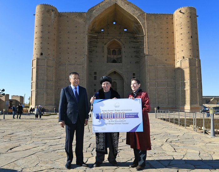 ال سەيسەنبى كۇنى ميلليونىنشى بولىپ تىركەلگەن قوناق اقش-تىڭ سولتۇستىك كورولينا شتاتىنان كەلىپتى. ەرلى-زايىپتى ۋيليام جانە باربارا برەنچتەردى تۇركىستان وبلىسىنىڭ اكىمى جانسەيىت تۇيمەباەۆ ياساۋي كەسەنەسى الدىندا كۇتىپ الدى. قازاقستانعا العاش كەلىپ وتىرعان ۋيليام برەنچ امەريكالىقتار تۇركىستاندى ورتا ازيا مەملەكەتتەرى ىشىندەگى تاريحى باي, كيەلى مەكەندەردىڭ ءبىرى رەتىندە تانيتىنىن ايتادى. اقش ازاماتتارىنىڭ قاسيەتتى قالاعا ءجيى كەلۋى دە سوندىقتان. ء«بىز تۇركىستان قالاسى مەن ءياساۋيدىڭ تاريحىنان حاباردارمىز. قازاقستانعا, تۇركىستان وڭىرىنە كەلگەلى قازاق حالقىنىڭ قوناقجايلىعى مەن دارقاندىعىنا كۋا بولدىق. اقش-قا بارعاننان كەيىن ونداعى وتانداستارىمىزعا وسى قۇندىلىقتارىڭىزدى جەتكىزىپ, كەلەسى جىلى ارنايى تاعى ات باسىن بۇرامىز», - دەدى ۋيليام برەنچ.