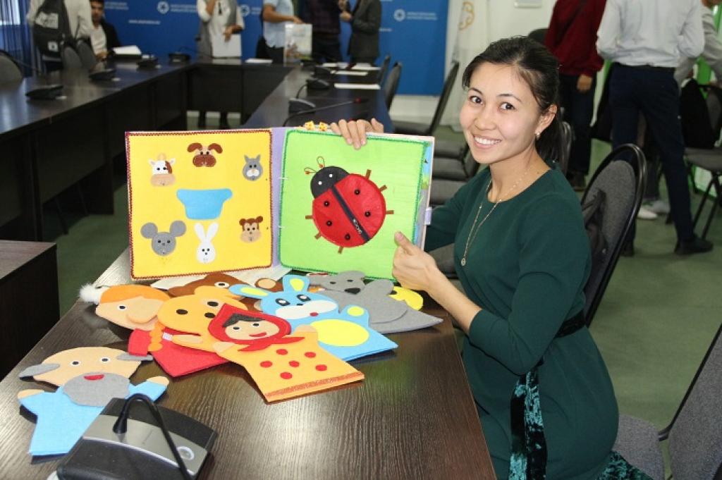 مۇنداعى تاعى ءبىر قىزىقتى جوبا «فەتردەن ازىرلەنگەن بالالارعا ارنالعان دامىتۋ كىتاپشالارى مەن ويىنشىقتارىن وندىرەتىن شاعىن تسەح» اشۋ بولدى. «جاس كاسىپكەرلىك مەكتەبىنىڭ» قاتىسۋشىسى سىرعالىم تويباەۆا كيىزدەن بالالاردىڭ اقىل-ويىن دامىتۋعا باعىتتالعان ءتۇرلى ويىنشىقتار تىگۋمەن اينالىسادى. كەيىننەن بالاباقشالار مەن اتا-انالار تاراپىنان سۇرانىس تۇسە باستاعانىن بايقاعان ول تاپسىرىس قابىلداپ, ويىنشىقتار مەن كىتاپتار تىگە باستايدى.
