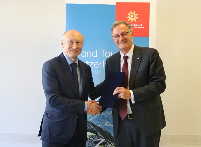 كەلىسسوزدەردىڭ قورىتىندىسى بويىنشا «Kazakh Tourism» جانە «Swiss Tourism» اراسىنداعى ىنتىماقتاستىق تۋرالى مەموراندۋمعا قول قويۋ ءراسىمى ءوتتى. مەموراندۋمعا سايكەس, شۆەيتساريالىق تاراپ قازاقستاننىڭ ۇلتتىق پاركتەرى مەن تاۋلى ايماقتارىنداعى جىل بويى قىزمەت كورسەتەتىن ءتۋريزمدى دامىتۋعا, تاۋلى گيدتەر مەن شاڭعى ينسترۋكتورلارىن دايارلاۋ ستاندارتتارىن ەنگىزۋگە قولعابىس كورسەتەتىن بولادى. سونداي-اق, ەكىجاقتى قۇجات تۋريستىك ونىمدەردى ىلگەرىلەتۋ ءۇشىن ءوزارا قولداۋ كورسەتۋدى, اقپارات الماسۋدى جانە حالىقارالىق ىنتىماقتاستىقتى تەرەڭدەتۋدى كوزدەيدى.
