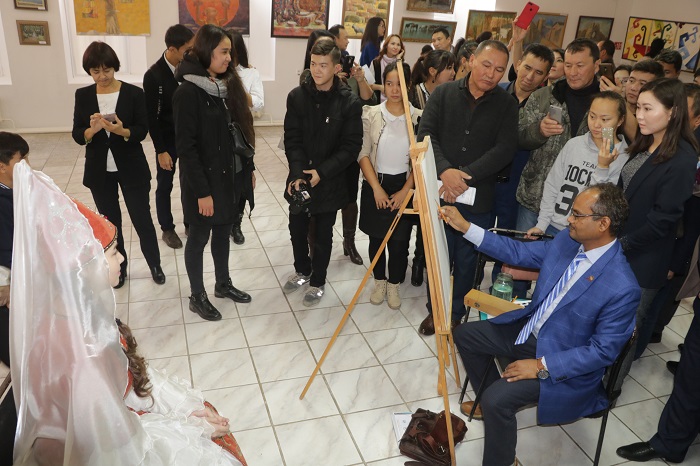كورمە اشىلۋى كەزىندە كۋرۋكشەترا ء(ۇندىستان) ۋنيۆەرسيتەتى بەينەلەۋ ونەرى باسقارماسىنىڭ توراعاسى, فيلوسوفيا ونەرىنىڭ PhD دوكتورى, پروفەسسور رام ۆيرانجان كەسكىندەمەدەن شەبەرلىك-ءدارىسىن وتكىزدى.