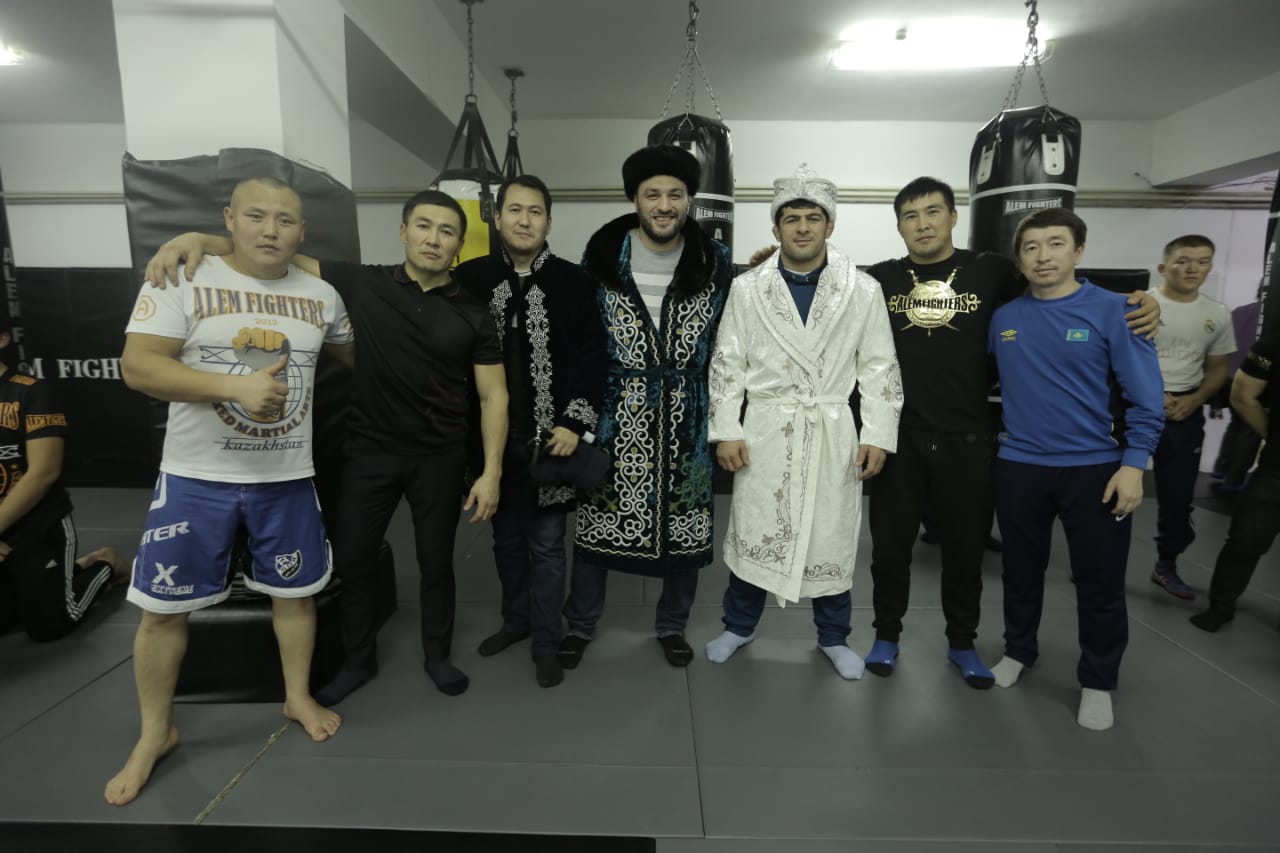 اعايىندى ارداق پەن بەيبىت نازاروۆتىڭ ارنايى شاقىرتۋىمەن داڭقتى بالۋان حادجيمۇرات گاتسالوۆ ءوز ارىپتەستەرىمەن بىرگە «الەم فايتەرس» كلۋبىندا قوناقتا بولىپ, وسى جەردە شەبەرلىكتەرىن شىنداپ جۇرگەن ورەندەرمەن ەمەن-جارقىن جۇزدەستى. 35 جاستاعى سولتۇستىك وسەتيانىڭ تۋماسى شەبەرلىك ساباعىن وتكىزىپ, جاس جەتكىنشەكتەرگە ءوزىنىڭ وڭ جامباسىنا كەلەتىن وڭتايلى ءادىس تاسىلدەردى ۇيرەتتى. كوپشىلىك تاراپىنان قويىلعان ساۋالدارىنا جاۋاپ بەرىپ, ءوزىنىڭ سپورت سالاسىنداعى زور تاجىريبەسىمەن ء بولىستى.