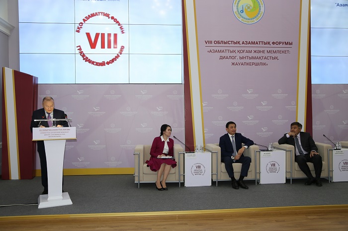 – ەلباسى ۇكىمەتتىك ەمەس ۇيىمداردىڭ مۇمكىندىكتەرىن تەرەڭ ءتۇسىنىپ, جوعارى باعالاپ وتىر. جانە ولارعا ەرەكشە كوڭىل اۋدارىپ, ۇنەمى قولداۋ كورسەتەدى. مەملەكەت باسشىسىنىڭ «قازاقستان جولى – 2050: ءبىر ماقسات, ءبىر مۇددە, ءبىر بولاشاق» اتتى جولداۋىندا مەملەكەت, ۇكىمەتتىك ەمەس سەكتور جانە بيزنەس اراسىنداعى ءوزارا ءىس-قيمىلدىڭ جاڭارتىلعان تاسىلدەرى كەرەك دەپ اتاپ ءوتتى. ءVIى ازاماتتىق فورۋمداعى ۇسىنىستاردى ىسكە اسىرۋدا قاجەتتى شەشىمدەر قابىلدانىپ, وبلىستاعى مەملەكەتتىك قۇرىلىمدار جانە ازاماتتىق قوعام ينستيتۋتتارى اراسىندا ىسكەرلىك ارىپتەستىك قاتىناستى نىعايتۋ باعىتىنداعى جۇمىستار جۇرگىزىلۋدە. باتىس قازاقستان وبلىسىندا جەرگىلىكتى اتقارۋشى بيلىك پەن قوعامدىق ۇيىمدار اراسىندا ءوزارا تىعىز قارىم-قاتىناس ورناتىلىپ, ازاماتتىق باستامالاردى جۇزەگە اسىرۋعا اتسالىسىپ جۇرگەن قوعامدىق ۇيىمداردىڭ قاتارى جىل سايىن ارتىپ كەلەدى. مەملەكەت تاراپىنان دا ازاماتتىق قوعامدى دامىتۋعا باعىتتالعان كەشەندى جۇمىس تۇراقتى جۇرگىزىلۋدە. مىسالى وبلىستا مەملەكەتتىك-الەۋمەتتىك تاپسىرىس كولەمى سوڭعى التى جىلدا 6 ەسەگە ءوستى. ەگەر 2012 جىلى 138 ملن. تەڭگە ءبولىنىپ, 120 جوبا جۇزەگە اسىرىلسا, بيىل 834 ملن. تەڭگە قارجىعا 200-دەي جوبا ورىندالىپ جاتىر. وڭىردە ۇكىمەتتىك ەمەس ۇيىمدار سانى دا ارتىپ كەلەدى. 2008 جىلى مۇنداي ۇيىم سانى – 150 بولسا, قازىر ولار 655-كە جەتتى, – دەدى ءوڭىر باسشىسى التاي كولگىنوۆ ءوز سوزىندە.