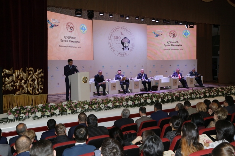 كونفەرەنتسيا جۇمىسىن اشىپ, جۇرگىزگەن قاراعاندى وبلىسىنىڭ اكىمى ەرلان قوشانوۆ بيىل بۇقار جىراۋ قالقامان ۇلىنىڭ 350 جىلدىعى اياسىندا وتكىزىلگەن شارالار تۋرالى ايتىپ بەردى.