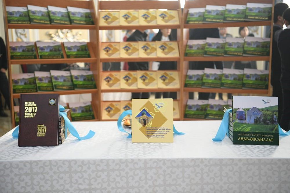 ءۇش تىلدە شىعارىلعان كىتاپ-فوتوالبومدا تۇركىستان وبلىسىنىڭ تاريحي ورىندارى تۇگەل قامتىلعان. كيەلى ورىندار مەن ەسكەرتكىشتەر تۋرالى ماعلۇماتتار قازاق, اعىلشىن جانە ورىس تىلدەرىندە بەرىلىپ, سۋرەتتەرمەن كومكەرىلگەن. ال «وڭتۇستىكتىڭ قاسيەتتى ورىندارى: اڭىز-ءاپسانالار» اتتى كىتاپتا ايماقتاعى اۋليە-امبيەلەر, ەل اۋزىنداعى تۇلعالار تۋرالى اڭىزدار مەن اڭگىمەلەر جازىلعان. كونە زامانداردان سىر شەرتەتىن ءاپسانالار مەن قىزىقتى دەرەكتەر مول.