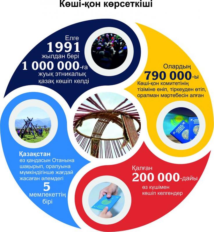 قيىرداعى قانداستاردىڭ ۇلى كوشى جايلى مەملەكەت باسشىسى نۇرسۇلتان نازارباەۆ «كەزىندە تاۋەلسىزدىك العان تۇستا, 1991-1995 جىلدارى قازاقستاننان 3,5 ميلليون حالىق كوشىپ كەتتى. سول كورسەتكىش بويىنشا حالىق سانى 14 ميلليونعا دەيىن تۇسكەن. قازىرگى ۋاقىتتا قايتا قالپىمىزعا كەلىپ جاتىرمىز. ونىڭ ىشىندە 1 ميلليوننان استام قانداسىمىز سىرتتان كەلدى», دەپ زور ماقتانىشپەن ايتادى. ەلباسىنىڭ ەرەن ەڭبەگىمەن قولعا الىنعان تاريحي قادام بۇگىندە ءوز جەمىسىن بەرىپ وتىر. ەڭبەك جانە حالىقتى الەۋمەتتىك قورعاۋ مينيسترلىگىنىڭ مالىمەتىنە سۇيەنسەك, بيىلدىڭ وزىندە رەسپۋبليكاعا 7 162 وتباسى نەمەسە 11 617 ەتنوستىق قازاق قونىس اۋدارىپ, ورالمان مارتەبەسىن العان. قانداستاردىڭ – 47,9%-ى – وزبەكستاننان, 40,4% – قحر-دان, 3,8% – موڭعوليادان, 2,9% – تۇرىكمەنستاننان, 1,3% – رەسەيدەن جانە 3,7% – باسقا ەلدەردەن كوشىپ كەلىپتى. ورالمانداردىڭ ەڭ كوپ بولىگى الماتى – 32%, تۇركىستان – 18,1%, ماڭعىستاۋ – 10,9% وبلىستارىنا جانە استانا قالاسىنا – 9,4% قونىستانعانىن ايتا كەتۋىمىز كەرەك.