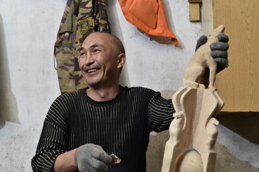 ءبىز كىرىپ كەلگەندە شەبەر ء«ومىر جاڭعىرىعى» اتتى تۋىندىسىن ويۋ ۇستىندە ەكەن. قولىنا العان كەز-كەلگەن دۇنيەگە بار ىنتى-شىنتىسىمەن كىرىسەتىنى كورىنىپ-اق تۇر.