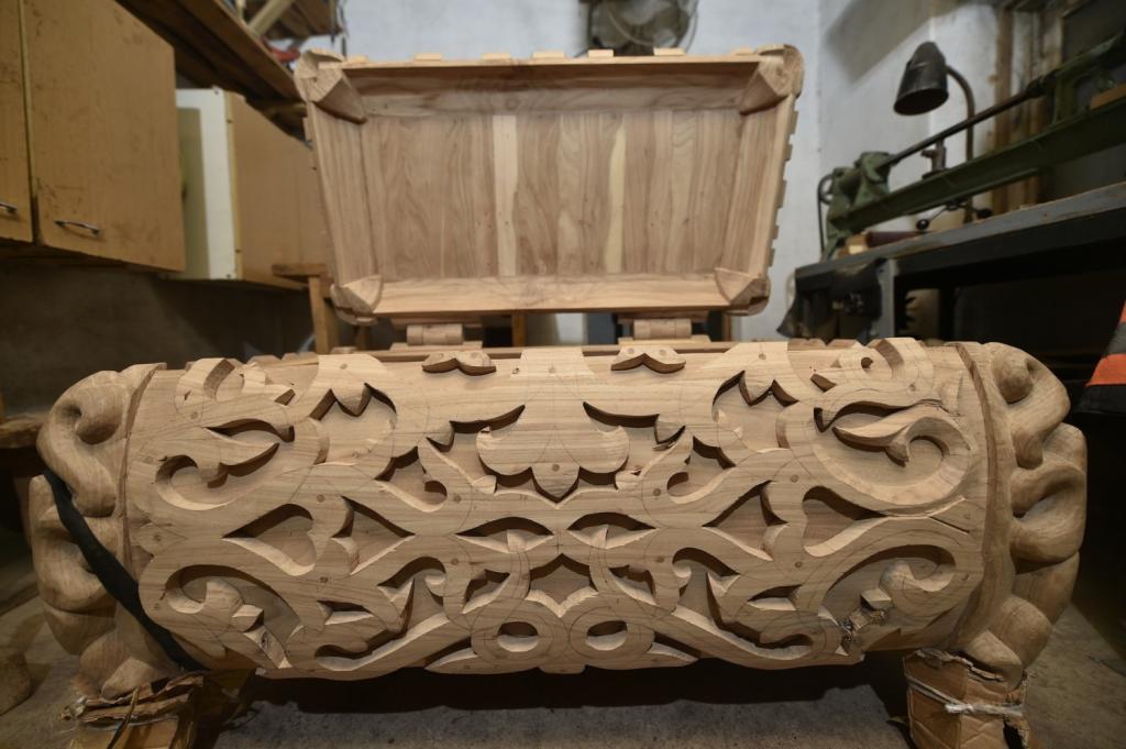 بالا كۇنىمىزدە اجەلەرىمىزدىڭ كەزدەمە, كامپيت, ناۋات ساقتايتىن اعاش ساندىقتارىن كورىپ وستىك. بىراق, ءدال مىناداي اسەم ساندىقتى العاش كورۋىمىز. «بۇل جۇمىس ءالى تولىق اياقتالمادى» , — دەيدى ءمۇراتالى اعا.