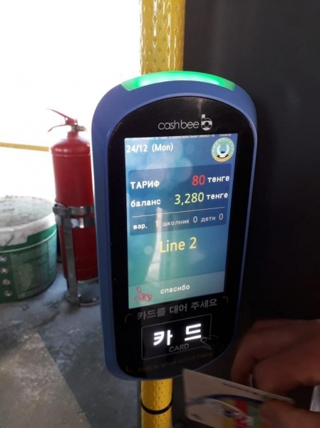 – قازىر №118-ءشى مارشرۋتتاعى اۆتوبۋستاردا ءبىر-ءبىر تەرمينالدان ورناتىلدى جانە جۇرگىزۋشىگە پلانشەت بەرىلدى. تاعى دا 200-گە تارتا تەرمينال كەدەندىك راسىمدەۋدەن وتۋدە, سەبەبى ولار كورەيادان جەتكىزىلەدى. 2019 جىلدىڭ قاڭتارىندا تەرمينالداردى بارلىق مارشرۋتتارعا ورناتۋ باستالادى. ول جۇمىستار ءۇش اي ۋاقىتتى قاجەت ەتەدى. ەلەكتروندىق كارتالار دۇڭگىرشەكتەر مەن دۇكەندەردىڭ بارلىعىندا ساتىلاتىن بولادى. ولاردى تولتىرۋعا قاتىستى ەش قيىندىقتار تۋىندامايدى, – دەدى قالا اكىمدىگىنىڭ جولاۋشى كولىگى سەكتورىنىڭ مەڭگەرۋشىسى ەسكەندىر قابيدوللا.