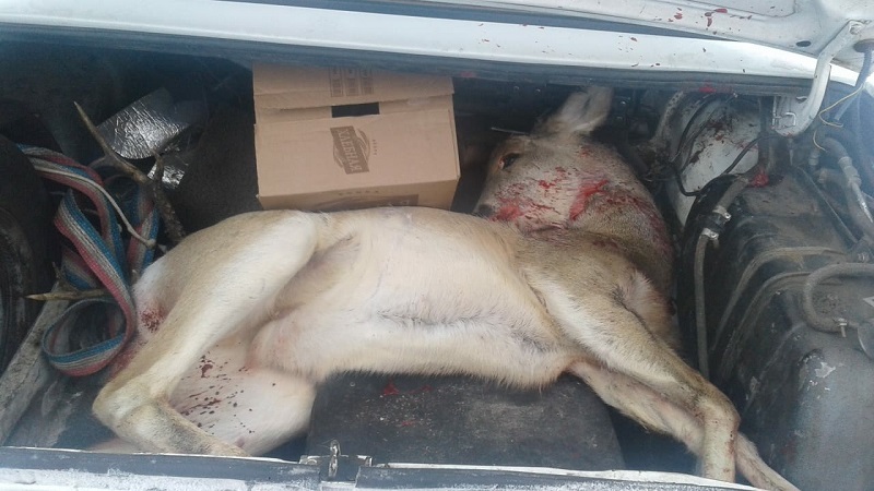 تابيعات قورعاۋ پوليتسەيلەرى جاقىندا قوستاناي-مامليۋتكا تاس جولىنىڭ بويىنان «ۆاز-2107» ماركالى جەڭىل كولىگىن توقتاتتى. جۇرگىزۋشىسى مەن ەكى جولاۋشىسى بار كولىكتى تەكسەرگەندە ونىڭ باگاجىنان اتىپ العان ەلىكتىڭ سويىلماعان تۇتاس ەتى مەن ەكى مىلتىق تابىلدى.