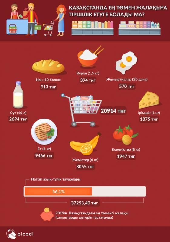 ءداستۇر بويىنشا جىلدىڭ باسىندا قازاقستاندا عانا ەمەس, باسقا مەملەكەتتەردە دە ەڭ تومەنگى جالاقى مولشەرى وسەدى. ارينە, بۇل تىزىمگە سكانديناۆيا تۇبەگى ەلدەر مەن يتاليا, اۆستريا, سينگاپۋر سياقتى ەلدەر كىرمەيدى. قازاقستان بۇۇ-نىڭ ەڭ تومەنگى جالاقىنى بەلگىلەۋ تۋرالى كونۆەنتسياسىن راتيفيكاتسيالاماعانىنا قاراماستان, بۇل كورسەتكىش ءومىر ءسۇرۋ دەڭگەيىن باعالاۋدىڭ باستى فاكتورلارىنىڭ ءبىرى بولىپ قالا بەرەدى. ازىق-ت ۇلىك ونىمدەرىنىڭ نەگىزگى قاجەتتىلىكتەرىن وتەۋ ءۇشىن قانشا قاراجات كەرەك؟