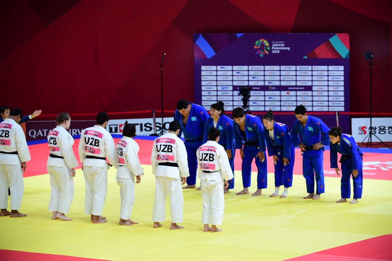 كوماندالىق باسەكەدە دزيۋدوشىلار التى سالماق دارەجەسى بويىنشا باق سىنايدى. قىزدار -57, -70, +70 كەلىدە, ەرلەر -73, -90, +90 كەلىدە ءوزارا ۇزدىكتەردى انىقتايدى.