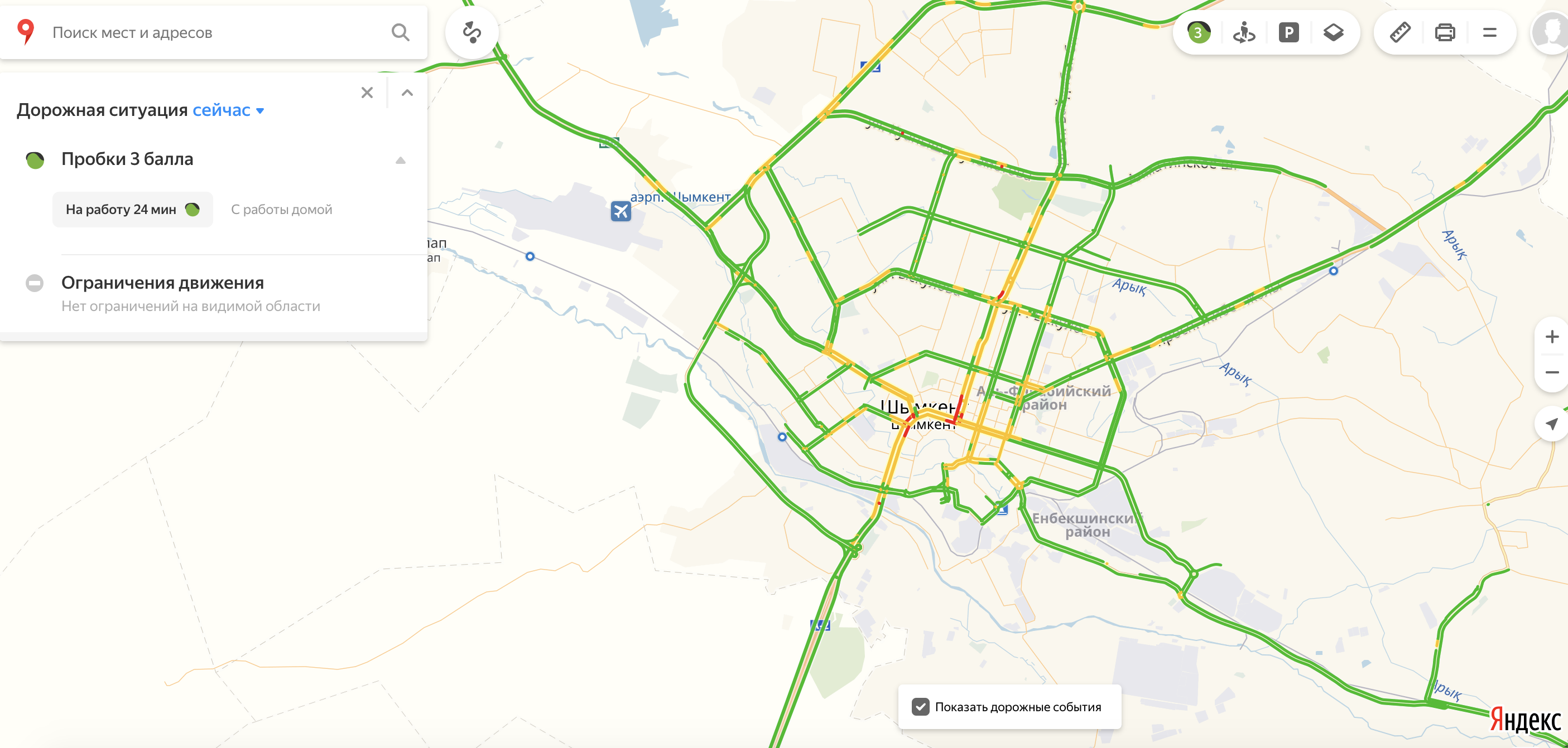 كەپتەلىس باللدارىن ىسكە قوسۋدىڭ الدىندا ياندەكس شىمكەنتتىڭ جولدارىنداعى جاعداي قالاي وزگەرەتىنىن زەرتتەدى. جۇمىس كۇندەرى قالادا كەپتەلىس ساعات تاڭعى 7:30-دا باستالادى. بۇل الماتىعا قاراعاندا كەشرەك, ال استانامەن سالىستىرعاندا شامامەن ءبىر ۋاقىتتا. ساعات 9:00-گە جۋىق كەپتەلىستىڭ ءۇش باللعا دەيىن باراتىن تاڭعى قاربالاس ءساتى. كەيىن جولدار بوسايدى, بىراق ساعات 11:30-دا كەپتەلىس تاڭعى شەككە دەيىن جەتەدى. ادامدار جۇمىستان ۇيگە قايتا باستاعان كەزدە, ساعات 17:30-دان كەيىن جولداعى جاعداي شۇعىل قيىنداي تۇسەدى. كولىك جۇرگىزۋشىلەرى ءۇشىن ەڭ اۋىر ساتتەردىڭ ءبىرى ول جول كەپتەلىسى 6-7 باللعا دەيىن باراتىن كەز – ساعات 18:40 پەن 19:40 ارالىعى. شىمكەنتتە كوپتەگەن باسقا دا قالالاردا سياقتى كەشكى جول كەپتەلىسى تاڭعىعا قاراعاندا ۇزاق ءارى قىزۋ وتەدى. دەگەنمەندە شىمكەنتتە تاڭعى جانە كەشكى جول كەپتەلىسىنىڭ ايىرماشىلىعى كوپتەگەن باسقا قالالارعا قاراعاندا كوبىرەك.