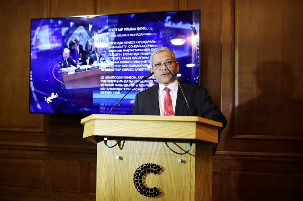 ۇلىبريتانيانىڭ ەۋروپا مەن امەريكا ىستەرى بويىنشا مەملەكەتتىك ءمينيسترى سەر الان دانكان, قر ەلشىسى ەرلان ىدىرىسوۆ جانە 2019 جىلعى 1 قاڭتاردا بۇۇ قاۋىپسىزدىك كەڭەسىندە ازيا-تىنىق مۇحيت توبىنىڭ وكىلى رەتىندە قازاقستاننىڭ ورنىنا كەلگەن يندونەزيانىڭ ەلشىسى ريزال سۋكما بريفينگتە ءسوز سويلەدى. ءىس-شاراعا ۇلىبريتانيا سىرتقى ىستەر مينيسترلىگىنىڭ باسشىلىعى مەن قىزمەتكەرلەرى, بريتاندىق پارلامەنت مۇشەلەرى, بىرقاتار ەلشى, ىسكەرلىك توپتاردىڭ وكىلدەرى, ساراپشىلار جانە جۋرناليستەر قاتىستى.
