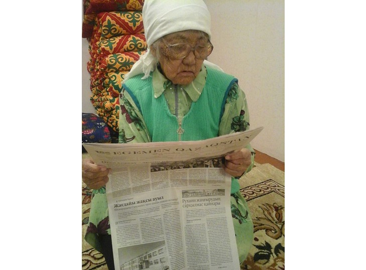 ۇلكەن ومىرگە, جەر-جيھان جاڭالىقتارىنا ەلىمىزدىڭ باس گازەتى ارقىلى جالعانعان قاميدا اجە ءالى كۇنگە دەيىن ءبىزدىڭ گازەتىمىزدى قاداعالاپ وتىرادى ەكەن. كوزاينەگىن كيىپ الىپ, گازەتتە جاريالانعان ماقالالاردى, ءتىپتى ەكسپەريمەنت رەتىندە باسىلىپ جۇرگەن لاتىن ارپىندەگى جازبالاردى دا وقىپ تۇرادى.