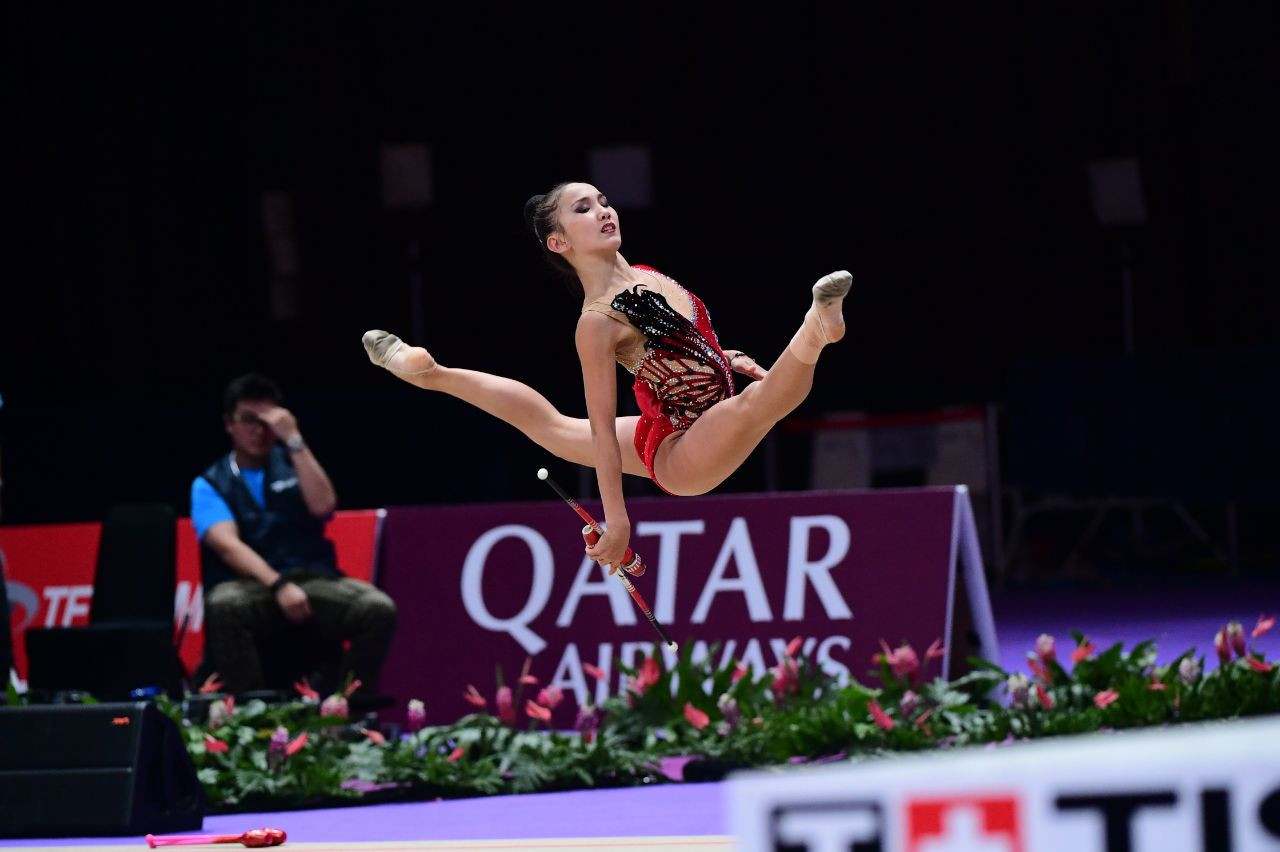 اديليا تىلەكەنوۆا دوپپەن جاتتىعۋدا ۇزدىك ۇشتىككە ەندى. ول رەسەي جانە رۋمىنيا گيمناستارىن العا جىبەرگەن.