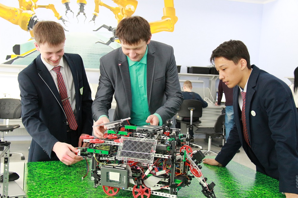 Робототехника және мехотроника пәнінің мұғалімі Дмитрий Алешин жас өнертапқыштардың талабын қолдап, көмектескен.