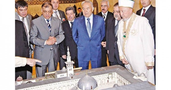 سۋرەتتە: قازاقستان رەسپۋبليكاسىنىڭ تۇڭعىش پرەزيدەنتى – ەلباسى ن.ءا.نازارباەۆ سيريا اراب رەسپۋبليكاسىنىڭ استاناسى داماسكىدەگى ەجەلگى مەشىتتە. داماسك. 2007