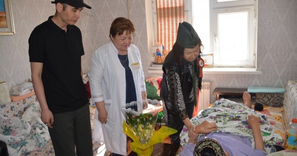 بۇگىن ءبىز ۇلى وتان سوعىسى ارداگەرى ەڭسەگەنوۆ كەڭەسباي اتامىزعا گۇل شوقتارىن