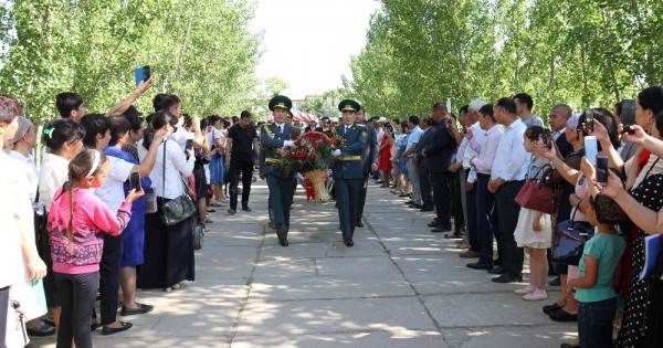 سالتاناتتى مەرەكەلىك شارادان سوڭ اۋدان باسشىسى باستاعان زيالى قاۋىم وكىلدەرى كەڭەس وداعىنىڭ باتىرى جولدىباي نۇرلىباەۆتىڭ مىرزاكەنت كەنتىندەگى ەسكەرتكىشىنە گۇل شوقتارىن قويىپ, تاعزىم ەتتى.