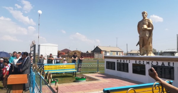 ەسكەرتكىشتىڭ اشىلۋ سالتاناتىن وتكىزۋگە سەلولىق وكرۋگ اكىمى ءۋاليحان بوستانوۆ پەن اۋىل تۇرعىندارى بىرلەسىپ قاراجات جينادى. ەل ىشىندەگى جامبىل جاقىپوۆ, بولاتبەك تىلەۋكەنوۆ, رايىس حاميدۋللين ءتارىزدى كاسىپكەرلەر قوماقتى كومەك كورسەتتى. ەسكەرتكىشتىڭ ماڭايى اباتتاندىرىلىپ, گۇل شوقتارى قويىلدى.
