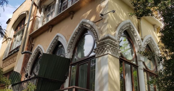 جاڭگىر ۇلدارىنىڭ مودەرن ستيلىندە سالىنىپ, گوتيكا مەن ماۆريتان ناقىشتارى جارىسا ساۋلەتتەگەن بۇل عيماراتىنىڭ ماڭدايىندا جاڭگىر اۋلەتىنىڭ ءرامىزى – احمەتكەرەي مەن عۇبايدوللانىڭ گەربى ءىلۋلى تۇرعان ەكەن. سوۆەت جىلدارىندا ول گەربى جويىلعانىمەن, تەرەزە جاقتاۋلارىنداعى تورە تاڭبا ساقتالىپ قالىپتى. عيماراتتىڭ كونە سۋرەتتەرى مەن قازىرگى بەينەسىن سالىستىرا سۋرەتتەگەن ايبولات قۇرىمباەۆ «بۇل تاڭبالاردىڭ جويىلماي ساقتالىپ قالعانى – اشەكەي ويۋعا ۇقساستىعىنان بولار» دەگەن بولجامىن ايتتى.