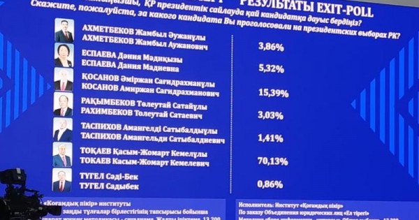 سونىمەن «قوعامدىق پىكىر» ينستيتۋتى جۇرگىزگەن Exit-poll قورىتىندىسى مىناداي: