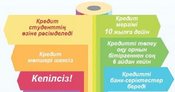 قازاقستاننىڭ كوللەدجدەرى مەن جوو-لارىندا وقۋدىڭ قولجەتىمدىلىگىن كەڭەيتۋ ماقساتىندا تالاپكەرلەر مەن ستۋدەنتتەرگە نەگىزگى قارىز سوماسىن تولەۋ مەرزىمىن 10 جىلعا دەيىن شەگەرۋ مۇمكىندىگىمەن كەپىلزاتسىز ستۋدەنتتىك كرەديت الۋعا جاعداي جاسالىپ وتىر. كرەديتتەر بويىنشا كەپىلمەن قامتاماسىز ەتۋ رەتىندە قازاقستان رەسپۋبليكاسىنىڭ ءبىلىم جانە عىلىم مينيسترلىگى جانىنداعى قارجى ورتالىعىنىڭ كەپىلدىگى جۇرەدى.