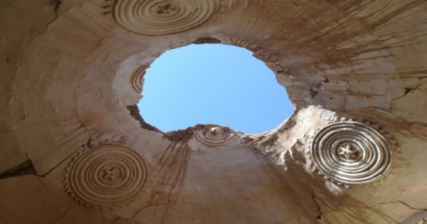 قۇرىلىستىڭ ىشكى قابىرعاسىن ادام جانىنىڭ ءۇش ءتۇرلى الەمدەگى ترانسى قۇرساق, ءدۇنيا جانە اسپان الەمىن سيپاتتاپ بەرىپ تۇرعانداي كولدەنەڭ جاتقان ءۇش تولقىندى سىزىقتار ءبولىپ جاتىر. مازاردىڭ ىشكى بولىگىندە ورتا بەلىنە اينالا سالىنعان جارتى شەڭبەردىڭ بارلىعى دەرلىك جوعارى بەتى مەن فيگۋرانى ۆەرتيكالدى ءبولىپ تۇرعان كەسىندى يرەلەك تولقىن تەكتەس. تەك قۇرىلىستىڭ سولتۇستىك بولىگىندەگى فيگۋرانىڭ ۆەرتيكالدى كەسىندىلەرىنىڭ اراسىن ەكى باعىتتى نۇسقايتىن ايىرىم بەلگىسىنە ۇقسايتىن سيمۆولدار ءبولىپ تۇر. ولاردىڭ سانى ۇشەۋ.