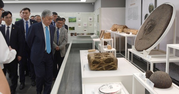 قاسىم-جومارت توقاەۆ لەيفەن پاگوداسىنا بارىپ, وندا ورنالاسقان كىتاپحاناداعى كونە قولجازبالاردى قاراپ شىقتى.