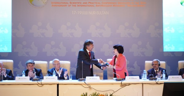 كونفەرەنتسيانىڭ اشىلۋىندا ءسوز العان مادەنيەت جانە سپورت ءمينيسترى ا. رايىمقۇلوۆا جينالعاندارعا قازاقستاننىڭ تۇڭعىش پرەزيدەنتى – ەلباسى ن. نازارباەۆتىڭ قۇتتىقتاۋ حاتىن وقىپ بەردى. بۇگىنگى قۇتتىقتاۋى مەن يادرولىق سىناقتى توقتاتۋعا قوسقان ەڭبەگىنە ريزاشىلىق بىلدىرگەن اقىن, «نەۆادا-سەمەي» انتيادرولىق قوزعالىسىنىڭ كوشباسشىسى و. سۇلەيمەنوۆ ەلباسى ن. نازارباەۆقا قوزعالىستىڭ 30 جىلدىعىنا ارناپ شىعارىلعان مەرەيتويلىق مەدالىن تاپسىردى. سونداي-اق مەرەيتويلىق مەدال مادەنيەت جانە سپورت مينيسترىنە دە تاپسىرىلدى.