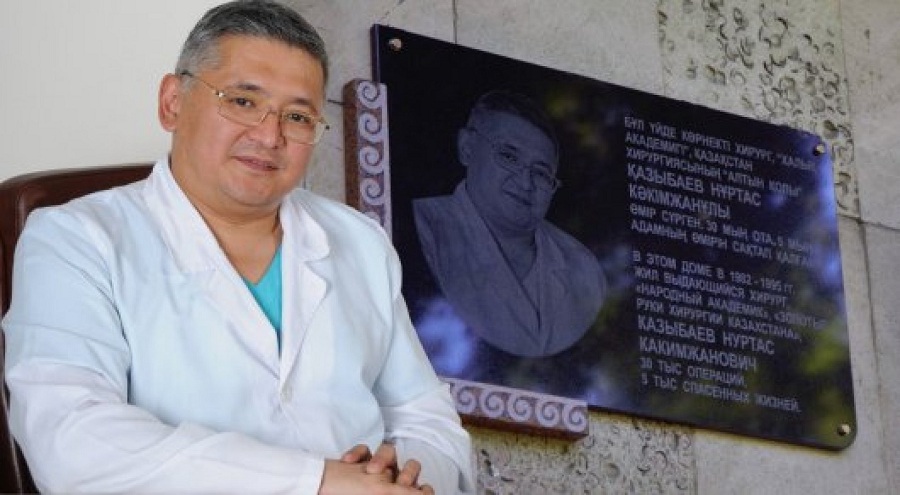 «التىن قولدى حيرۋرگ» اتانىپ كەتكەن دارىگەردىڭ مەموريالدى تاقتاسى جازۋشى-پۋبليتسيست, قوعام قايراتكەرى, جۋرناليست, اكەسى قازىباەۆ كاكىمجاننىڭ قاسىنا ورناتىلىپتى.
