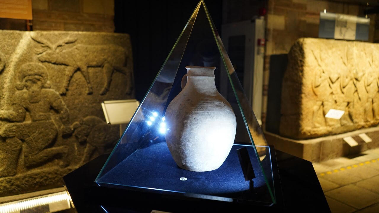 ەسىك قورعانىنان تابىلعان زاتتار اراسىندا ەجەلگى جازبا ەسكەرتكىشتەرىنىڭ ءبىرى رۋنا جازۋمەن جازىلعان جازباسى بار كۇمىس توستاعاننىڭ ەكسپوزيتسيادان الار ورنى ەرەكشە.